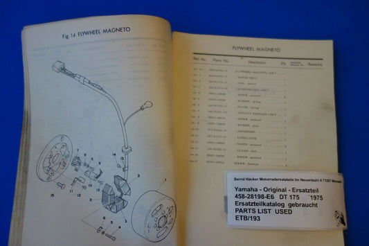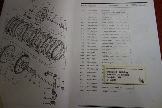 Ersatzteilkatalog Teileliste PARTSLIST Yamaha DT 175 Typ CT1 1975