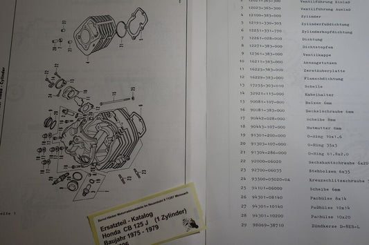 Ersatzteilkatalog Teileliste PARTSLIST CB 125 J Baujahr 1975 - 1979