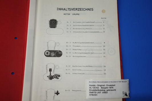 Ersatzteilkatalog _ Teileliste _ PARTSLIST _ Honda _ XL 125 K _ K2 _ Bj. 1976