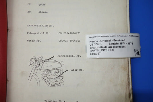 Ersatzteilkatalog _ Teileliste _ PARTSLIST _ HONDA _ CB 200 B _ Bj. 1974 - 1975