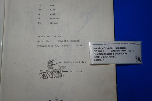 Ersatzteilkatalog _ Teileliste _ PARTSLIST _ Honda _ CB 400 F _ Bj. 1974 - 1975