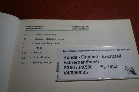 Fahrerhandbuch _ OWNER`S MANUAL _ PX50 + PX-L 50 _Baujahr 1982