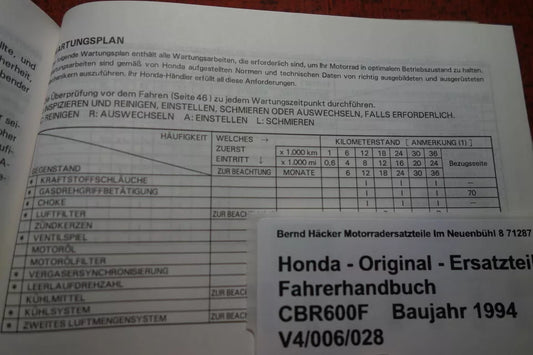 Fahrerhandbuch _ Owners Manual _ Manuel du Conducteur _ CBR 600 F _Baujahr 1994