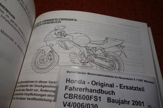 Fahrerhandbuch _ Owners Manual _ Manuel du Conducteur _ CBR 600 FS _Baujahr 2001
