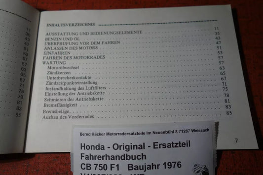 Fahrerhandbuch _ neu _ Owners Manual _ CB 750 F1 _ Baujahr 1976 _ Original Honda