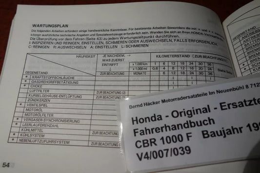 Fahrerhandbuch _ Owners Manual _ Manuel du Conducteur _ CBR 1000 F _Baujahr 1993