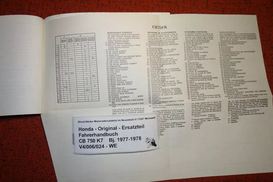 Fahrerhandbuch _ Owners Manual _ CB 750 K7 _ Baujahr 1977 - 1978 _ Top Zustand
