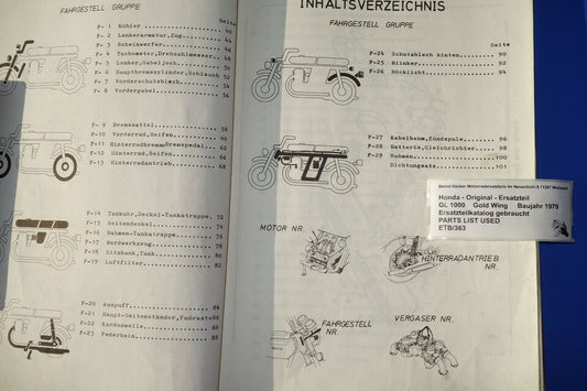 Ersatzteilkatalog Teileliste PARTSLIST GL 1000 Gold Wing Bj. 1979