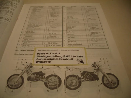 Assembly instructions _ SET-UP MANUAL _ original _ SUZUKI_ RMX 250_ year of manufacture 1994