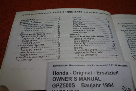 OWNER`S MANUAL _ Kawasaki _ GPZ 500 S _EX500 D1 / E1 _ Year of manufacture 1994