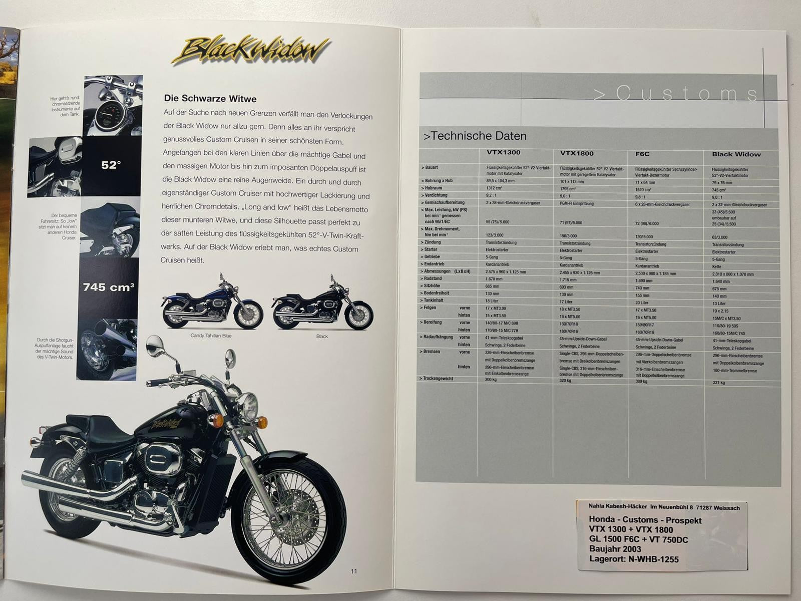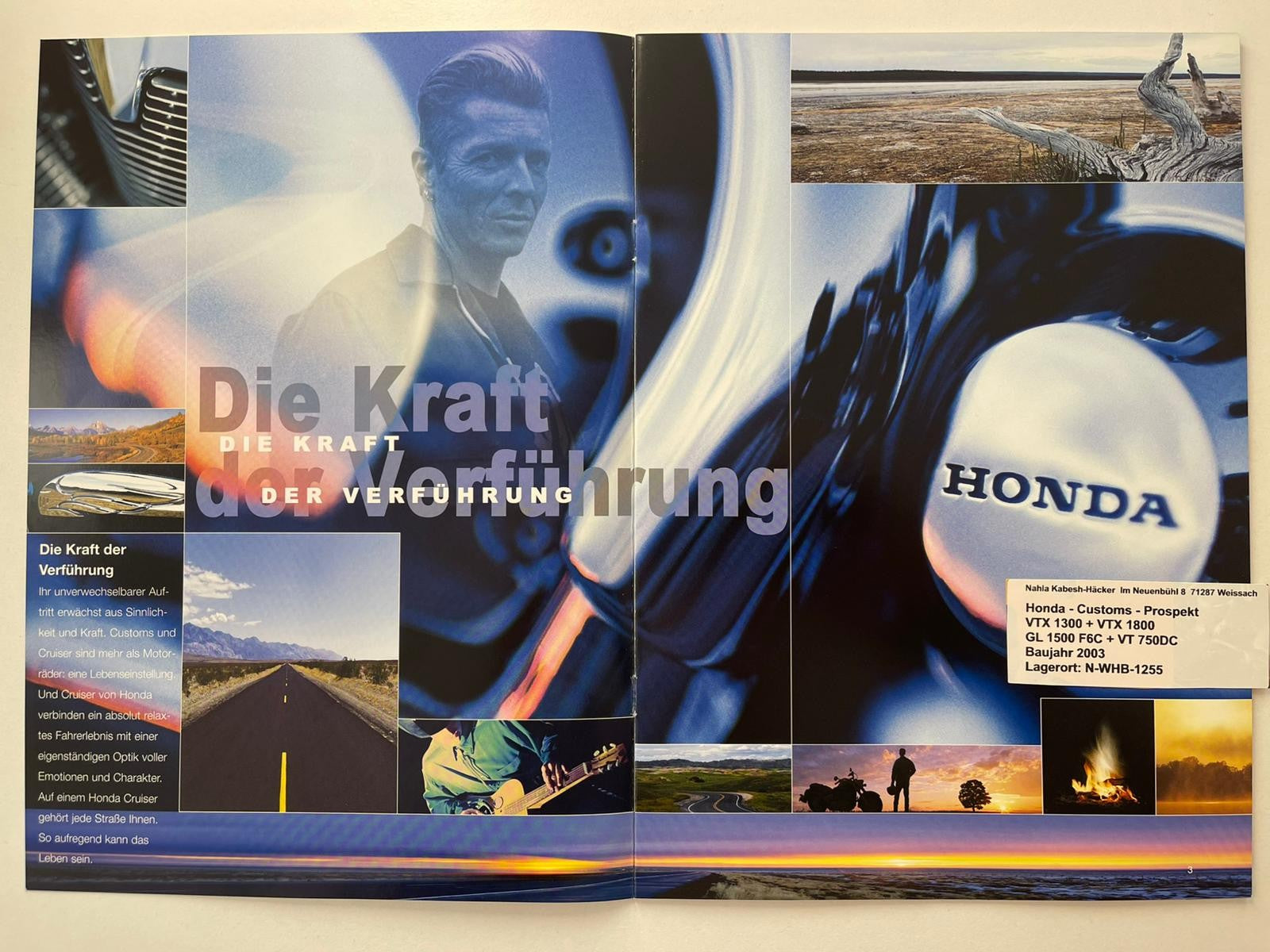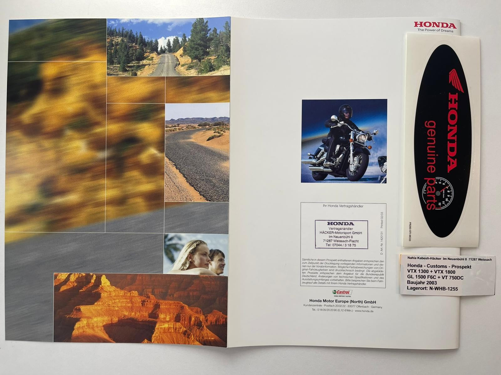 Prospekt Honda GL1500C Valkyrie F6C Gl 1500 C Baujahr 2003 + Aufkleber